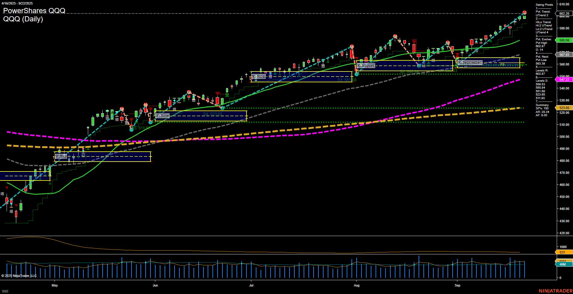 - QQQ (Nasdaq 100): 598.20, Bearish at -0.66%, tech-heavy names are underperforming.