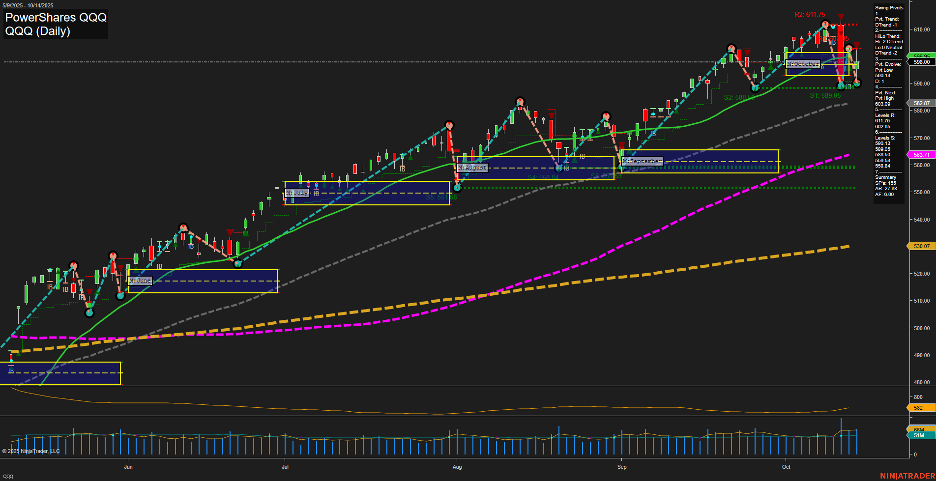 - QQQ (602.22): Tech-focused ETF is positive, up 0.71% as traders show sustained interest in growth-oriented sectors.