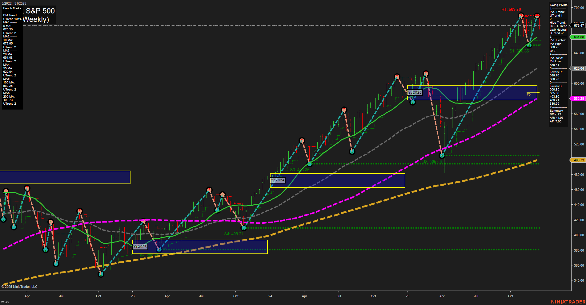- Long-Term: Bullish (all indices remain above YSFG NTZ, MAs steadily rising, higher timeframe trends intact)