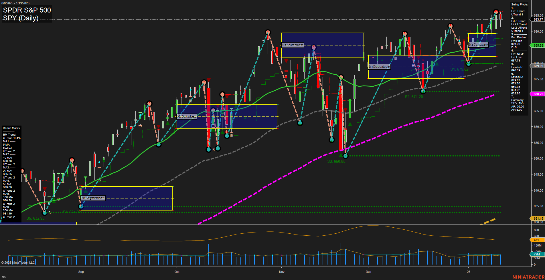 - SPY: 690.36 Bearish (-0.49%) – S&P 500 tracker under pressure with a notable selloff.