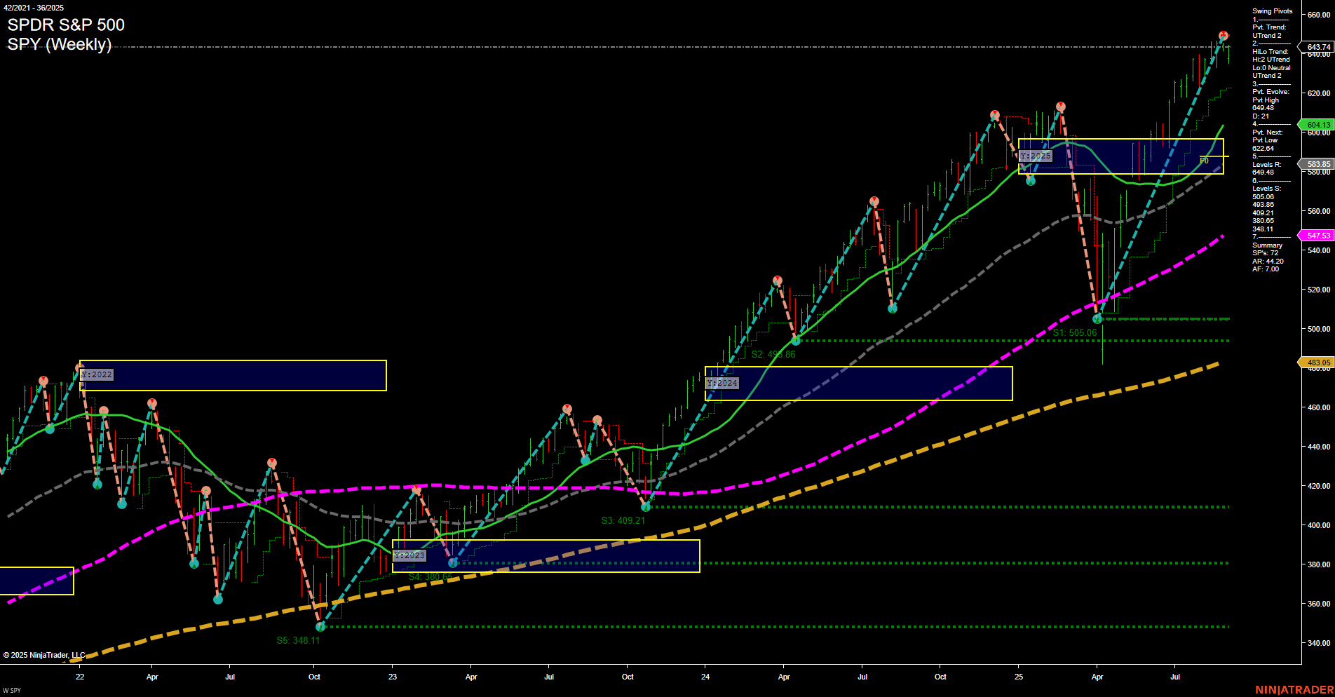- ES YSFG up, MSFG/WSFG down, price near ATH but below NTZ, long-term MAs up, choppy mixed signals, resistance 6523.00, support 6107.05/4079.00, long-term bullish, ST/IT pullback.