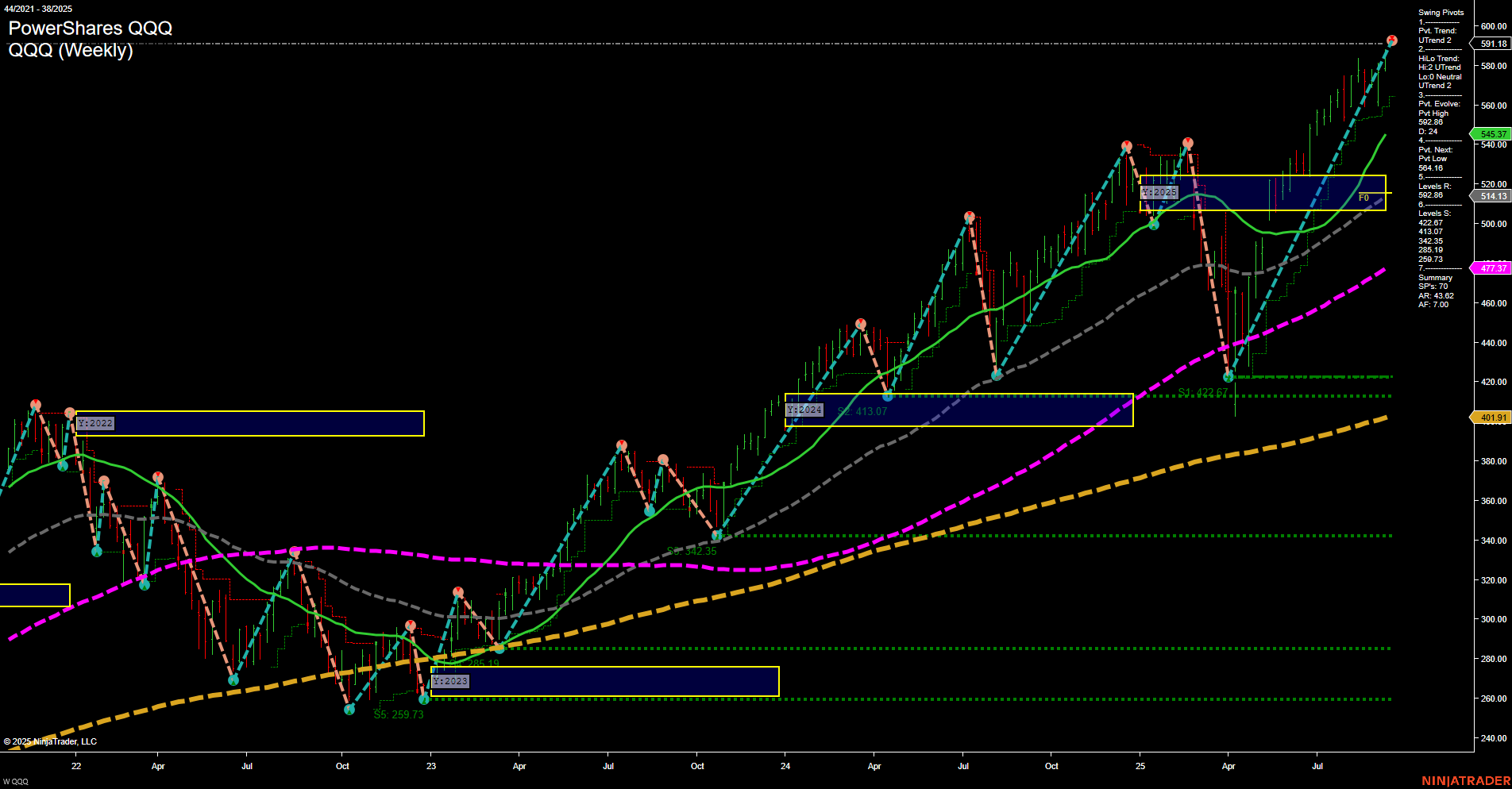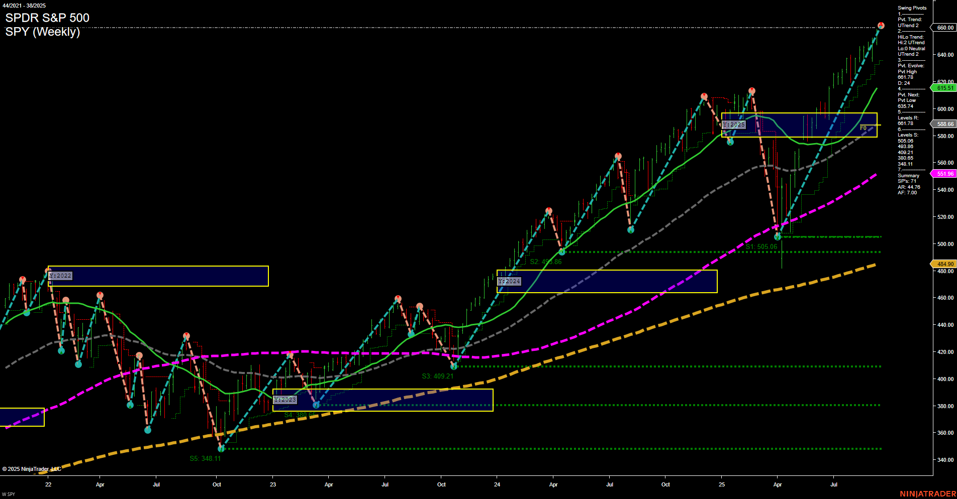 - YM YSFG, MSFG bullish; WSFG neutral/short-term consolidation below weekly NTZ; swing pivots uptrend, resistance at 46,639, support at 44,000, benchmarks upward, short-term mixed.