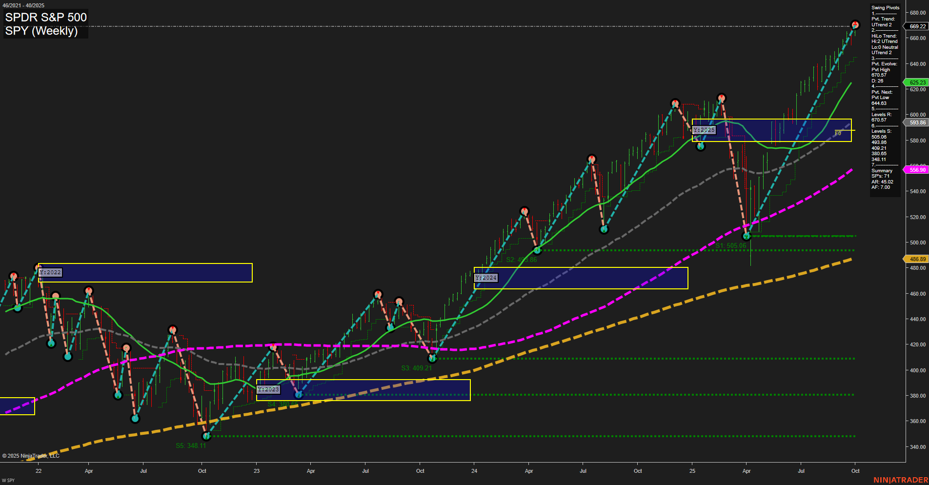 Summary of the current state of US Indices Futures based on higher time-frame (HTF) technical analysis as of: 2025-10-03: 07:16 CT.