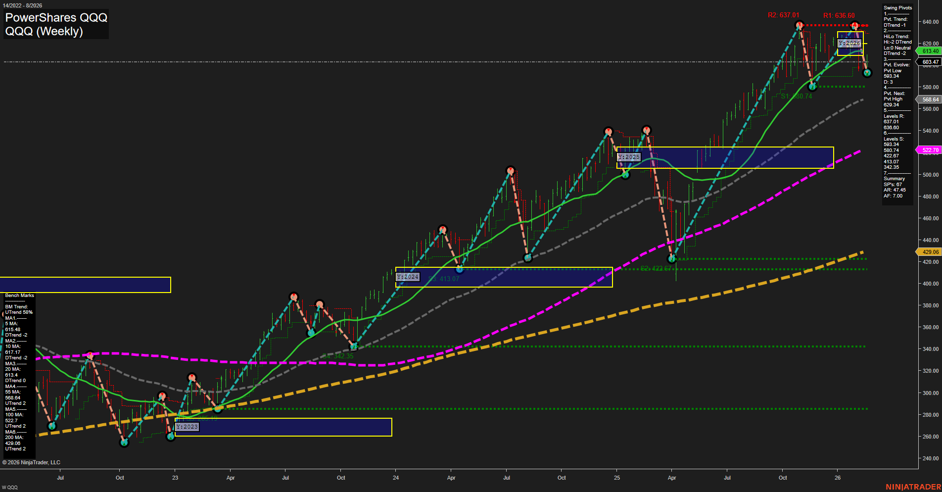 Summary of the current state of US Indices Futures based on higher time-frame (HTF) technical analysis as of: 2026-02-20: 07:16 CT.